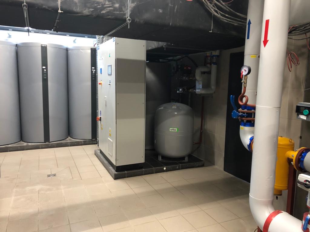 W ramach inwestycji dotyczącej modernizacja Stacji Uzdatniania Wody w Koninie zamontowaliśmy sześć pomp ciepła woda/woda Viessmann Vitocal 300-G 42kW (252kW) w układzie kaskadowym, trzy bufory wody grzewczej o pojemności 1000l każdy, zasobnik c.w.u. o pojemności 500l oraz wymiennik tytanowy dolnego źródła.